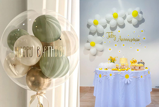 2- پس از انتخاب رنگ نوبت به انتخاب آیتم های دکور میرسد مشخص است که جز آیتم های اصلی باید میز تولد در نظر گرفته شود همچنین بادکنک دیزاین مخصوص تولد است سعی کنید محل میز و دکور را در جایی از منزل یا باغ انتخاب نمایید که پس زمینه ی ساده تری داشته باشد تا دکور تولد به خوبی خودش را نشان دهد مثلا در منزل دیواری که کاغذ دیواری با طرح و رنگ زیاد داشته باشد جای مناسبی برای دکور تولد نیست